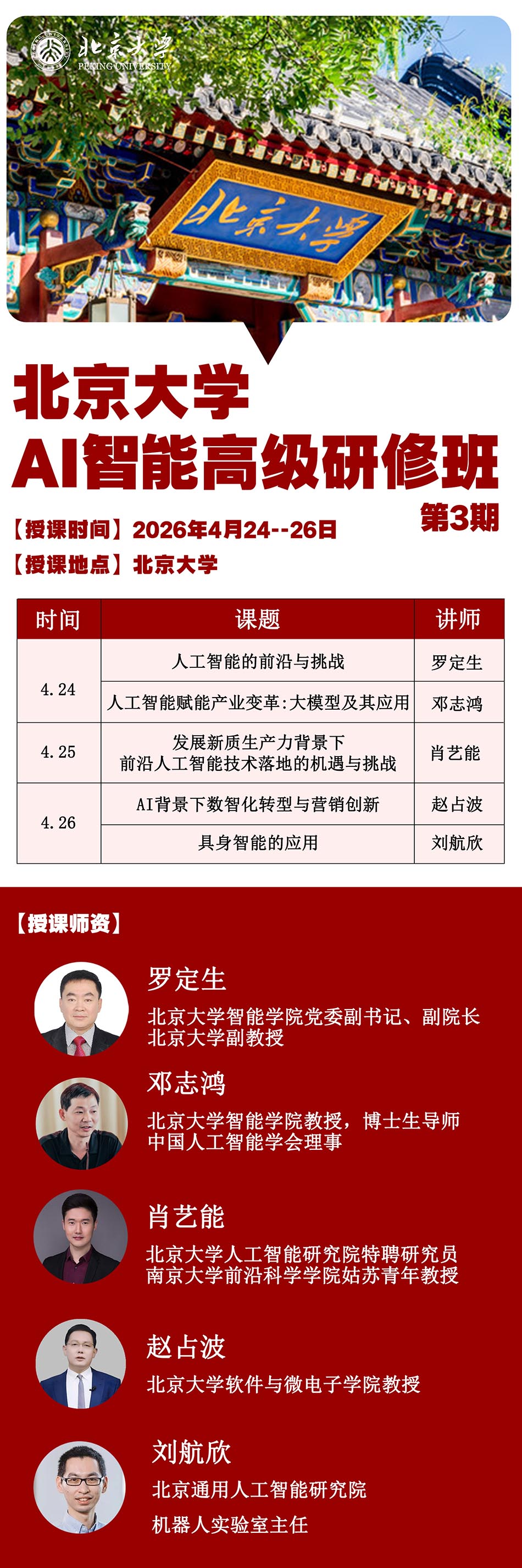 在人工智能技术重塑全球产业格局的浪潮中,为满足社会各界对高端AI人才的需求,北京大学整合顶尖学术资源与产业实践经验,推出“AI智能高级研修”