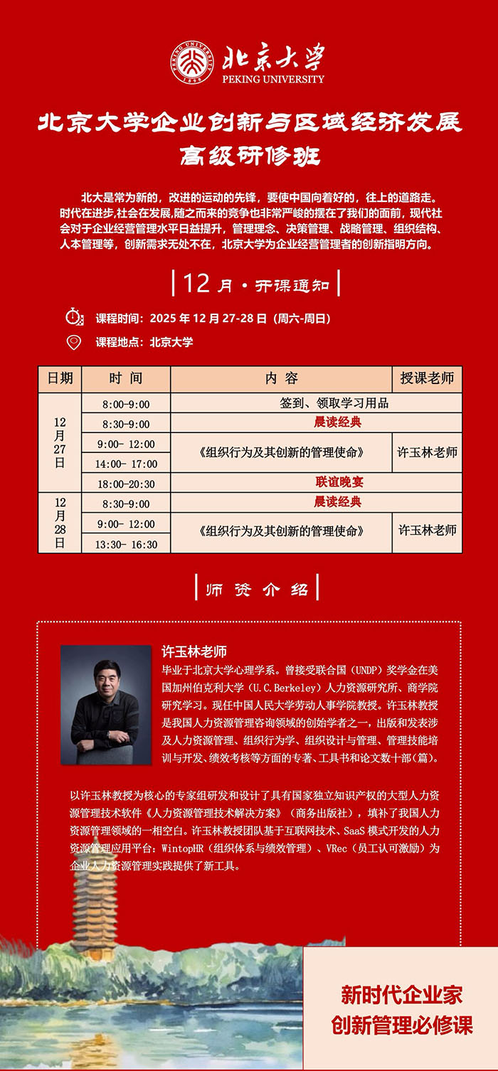 北京大学企业创新与区域经济发展高级研修班